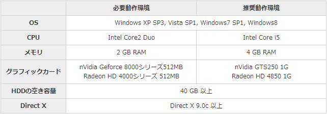 公式必要動作環境